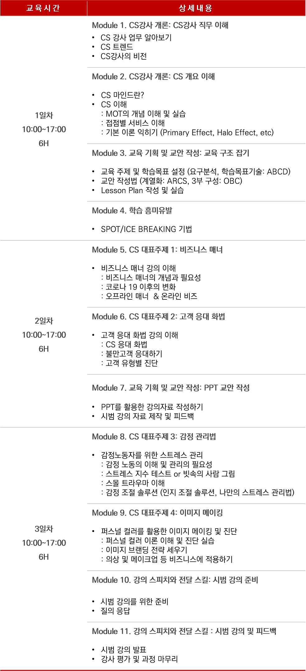 본교육은 CS 강사로서 활동하고자 하는 예비 강사,