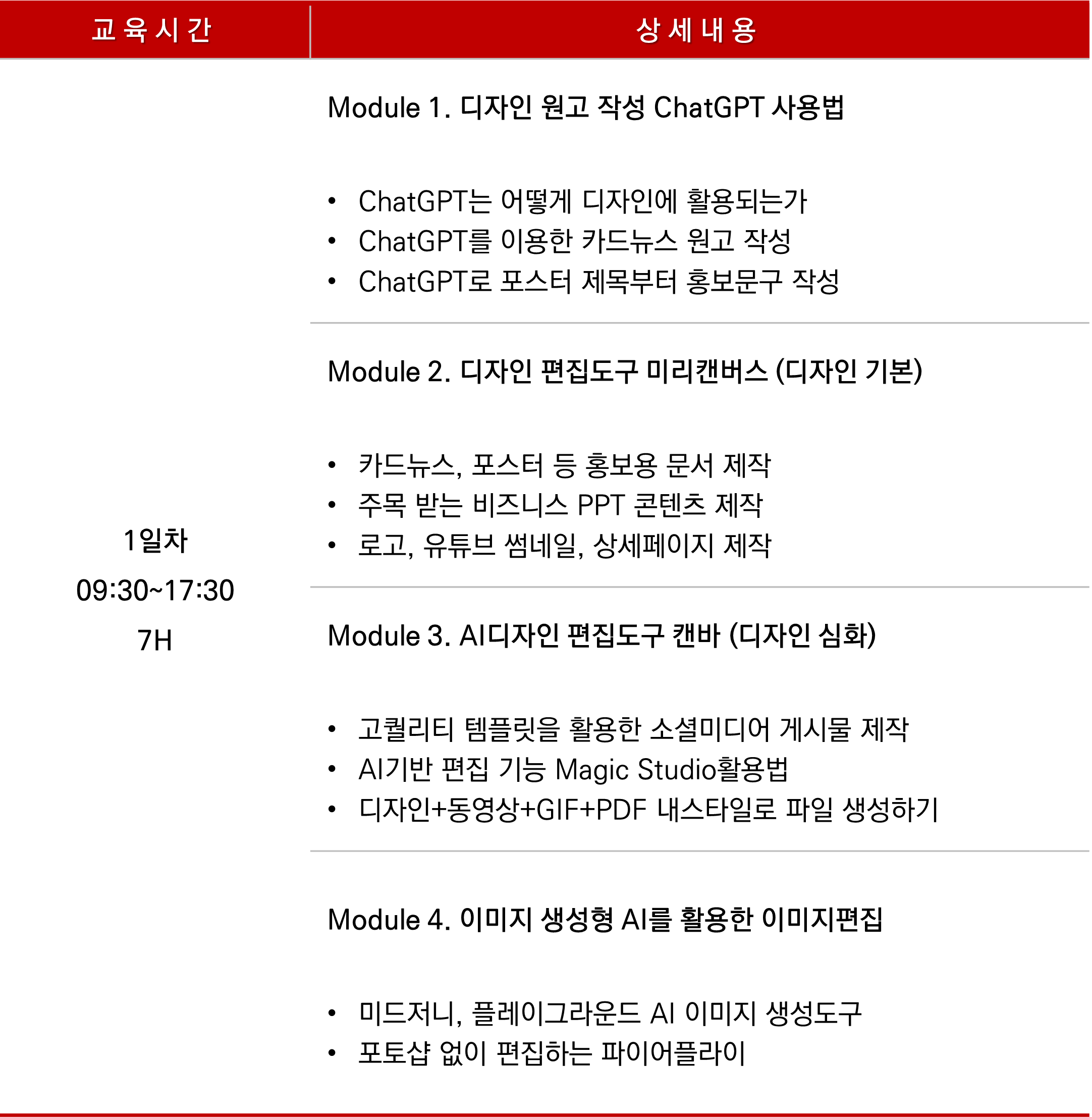 디지털 툴의 간단한 사용법부터 다양한 기능을 활용한 전문적인 디자인까지 학습하고, 업무 생산성을 향상시키시길 바랍니다.