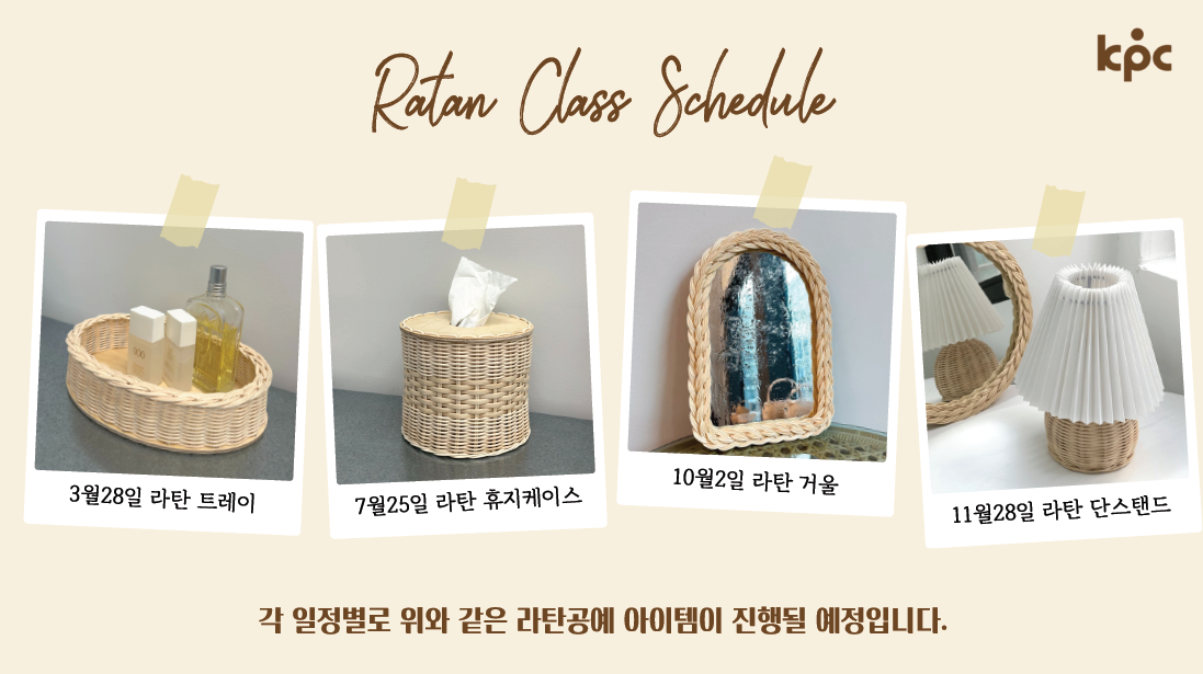 ※교육 인원에 맞춘 라탄공예 재료 수급을 위하여 보다 이르게 신청 마감될 수 있사오니, 교육 시작 7일 전까지 신청주시기를 권장드립니다.