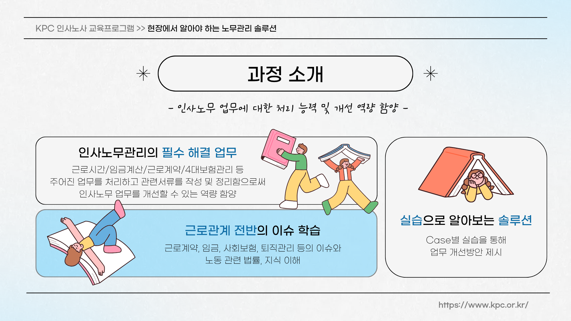 주어진 업무를 합법적으로 처리하고 제반 인사노무 관련서류를 작성 및 정리함으로써 인사노무 업무를 개선할 수 있는 역량 함양