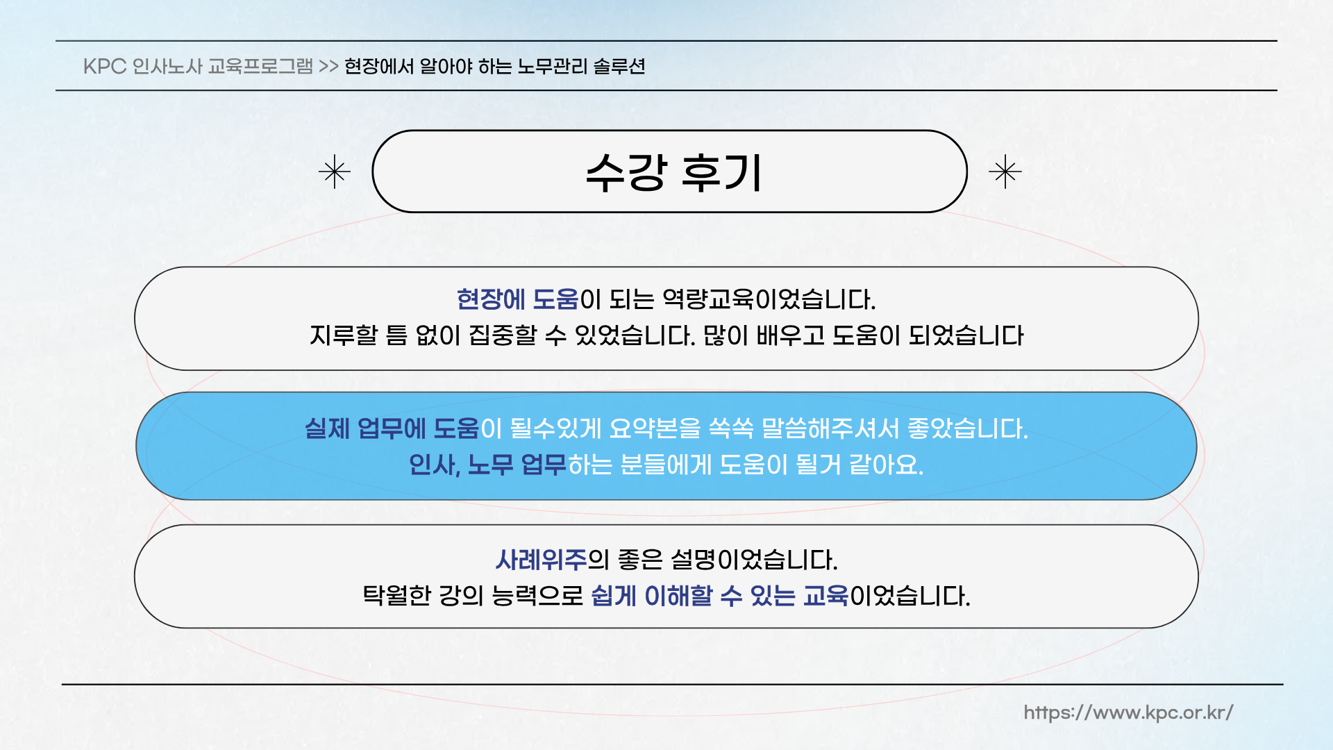 | 교육장소 | 한국생산성본부 1층 101호 |
