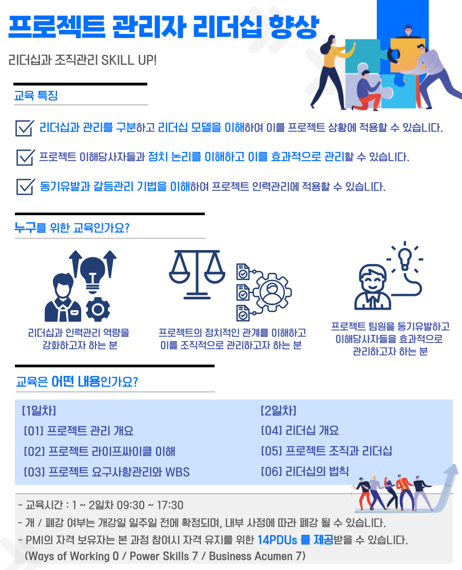 ■ 프로젝트 관리자 또는 조직관리자로서 리더십과 인력관리 역량을 강화하고자 하는 분