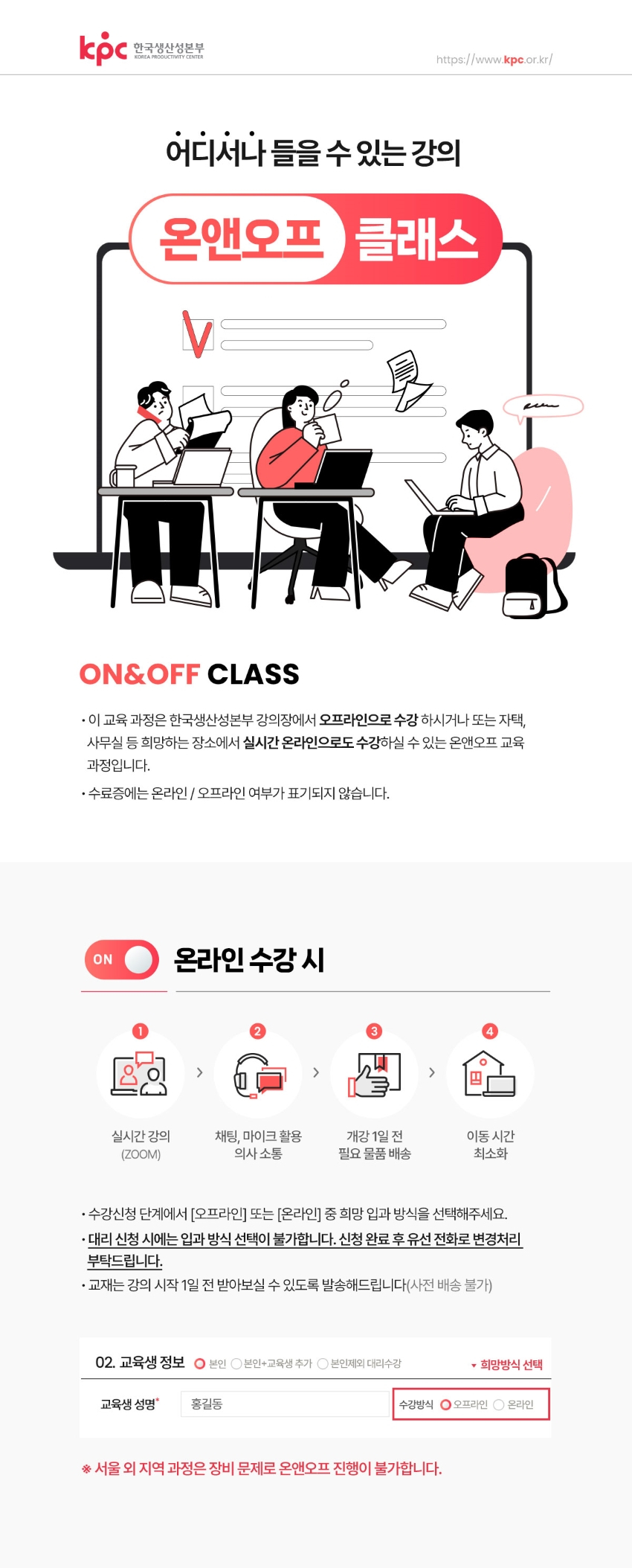 [온앤오프] 온라인 수강 희망시 수강구분에서 온라인을 선택하여 수강신청 부탁드립니다.