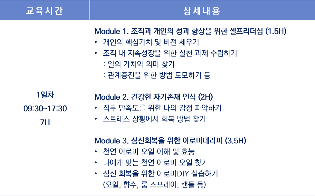 | 교육시간 | 1일, 7시간 / [목] 09:30~17:30 |