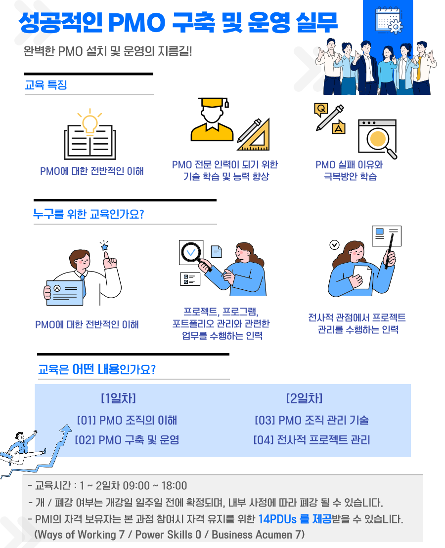 ▶ PMI 자격 보유자가 본 과정에 참여 시 자격유지를 위한 14PDUs 를 취득할 수 있습니다.
