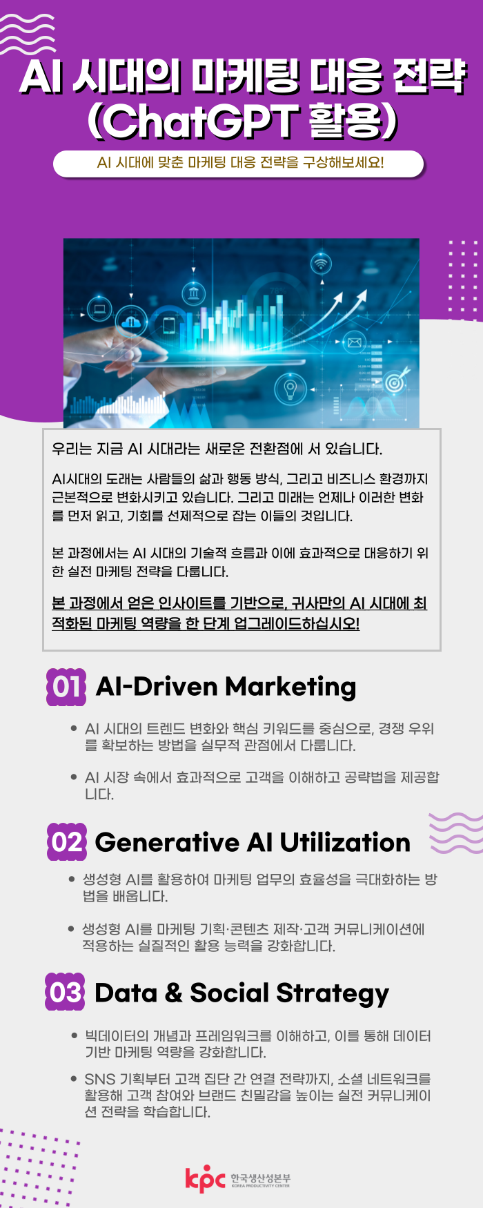 본 과정에서는 AI 시대의 기술적 흐름과 이에 효과적으로 대응하기 위한 실전 마케팅 전략을 다룹니다.