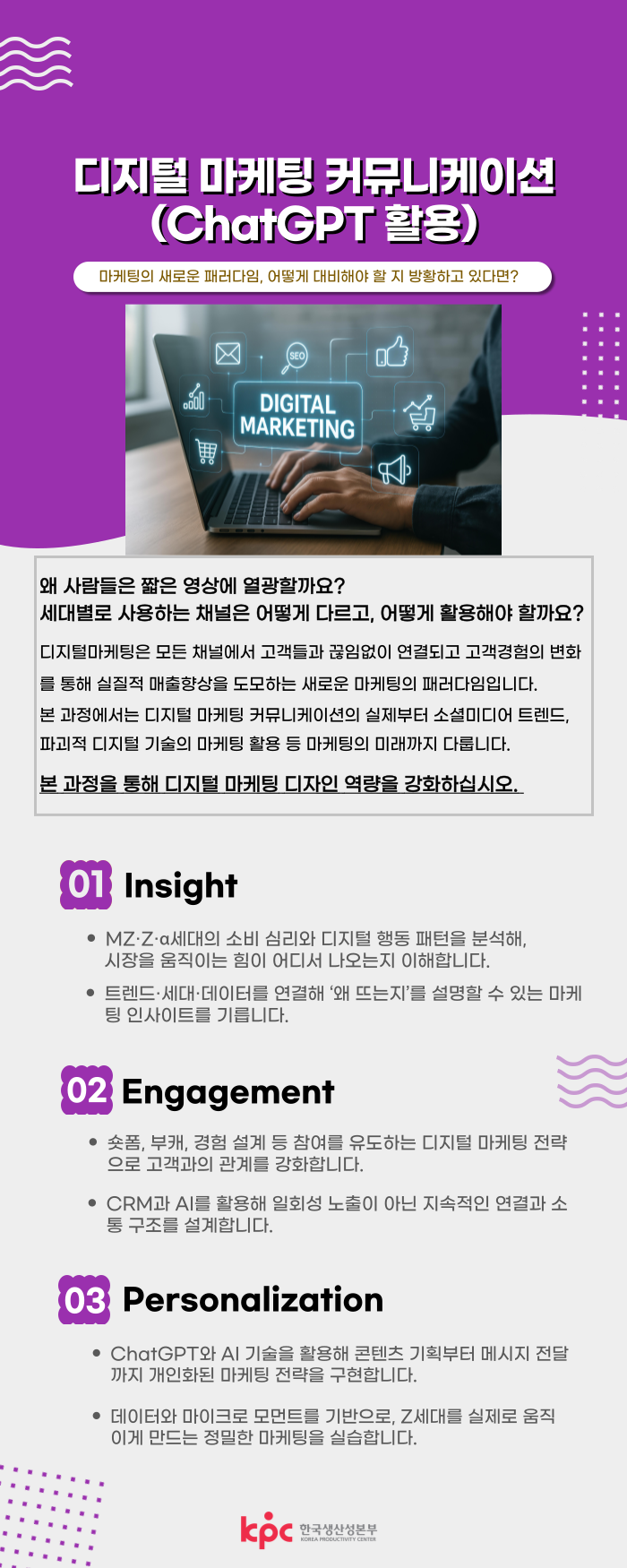 | 교육장소 | 한국생산성본부 3층 302호 |