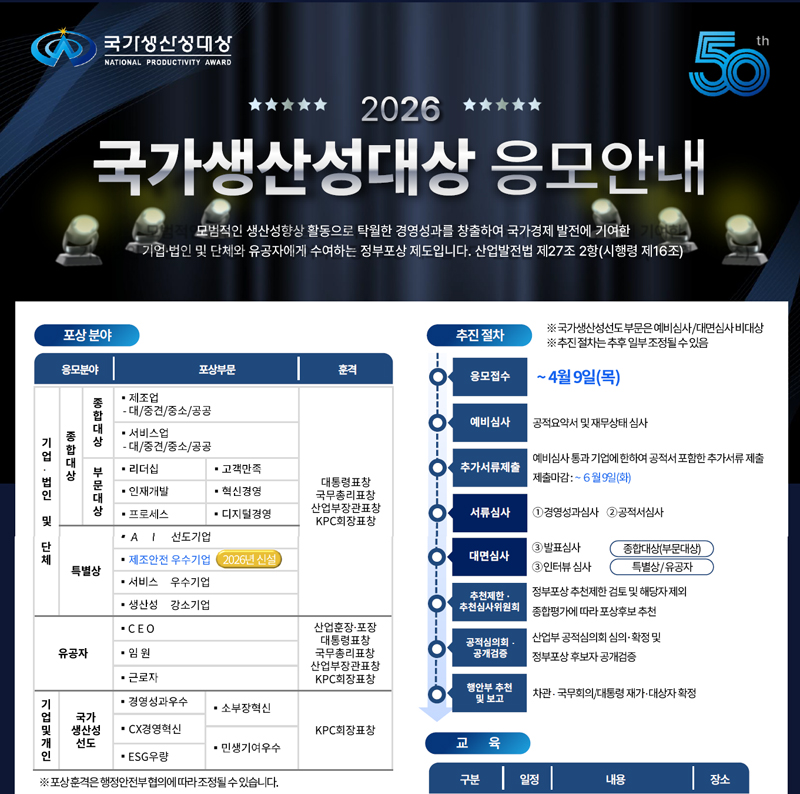 2026년 국가생산성대상(국가 생산성 향상 유공) 응모안내