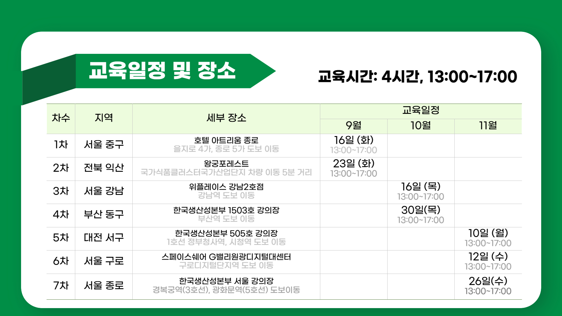 아래 교육 일정 및 장소를 확인해 주세요.