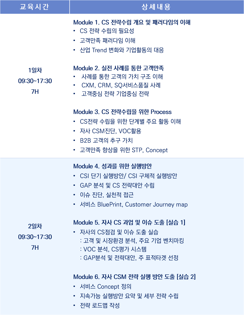| 교육장소 | 한국생산성본부 5층 501호 |
