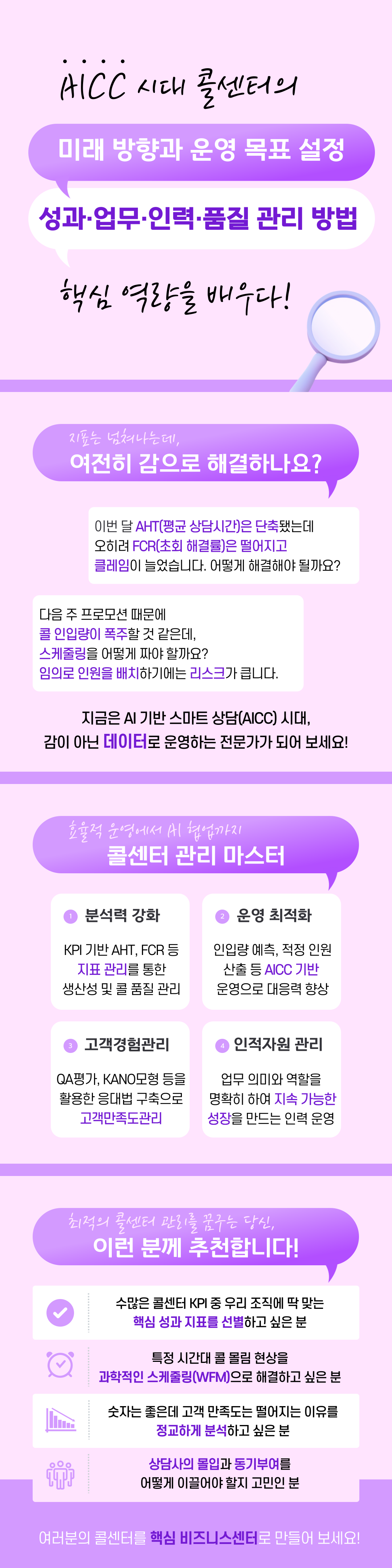 콜센터의 업무 개선방안에 대해 많은 도움을 받을 수 있는 기회가 될 것 같다.