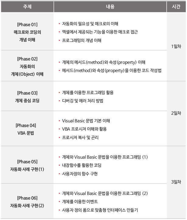 | 교육시간 | 3일, 21시간 / [월~수] 09:30~17:30 |