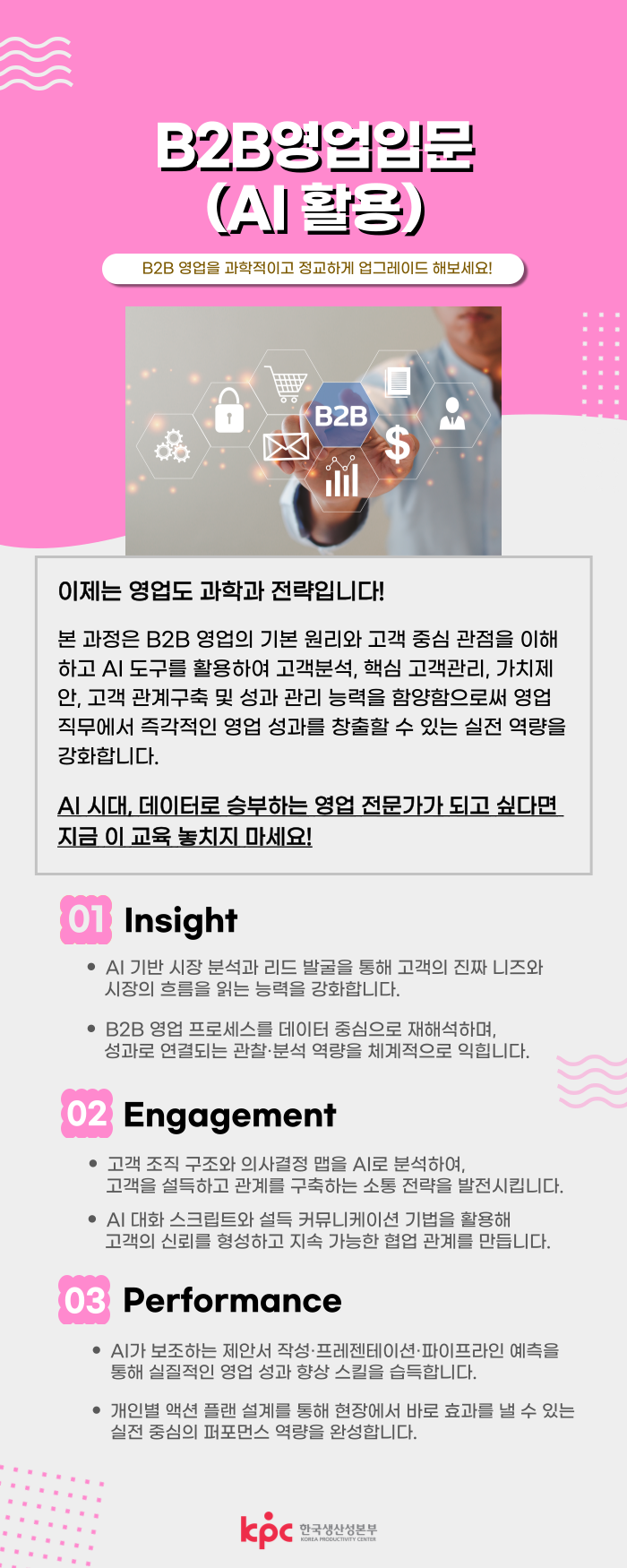 본 과정은 B2B 영업의 기본 원리와 고객 중심 관점을 이해하고