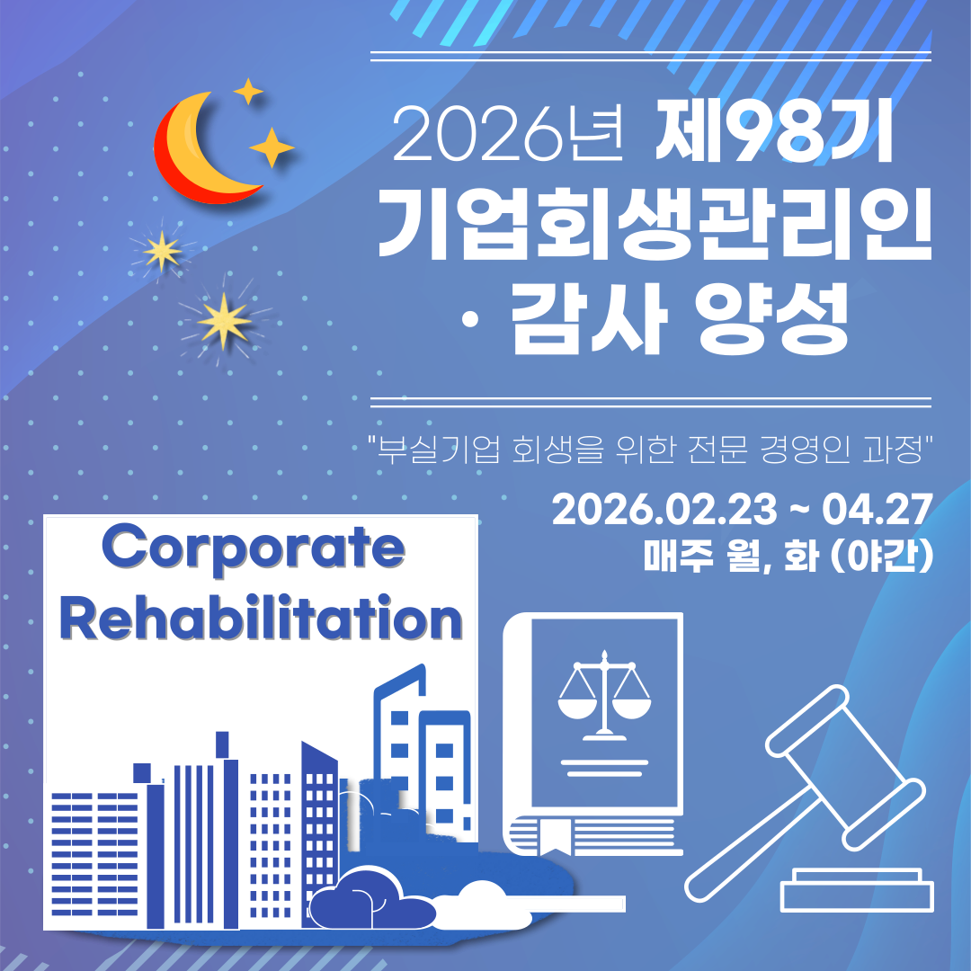 - 부실기업 회생을 위한 전문경영인을 양성하여 파산위기에 직면한 기업의 회생을 도모하고 국가 경제발전에 기여하고자 함.
