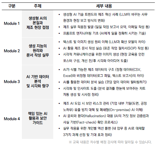 ● 제조 실무(작업 보고서, 매뉴얼 검색 등) 적용점 발굴 및 프롬프트 기초 습득