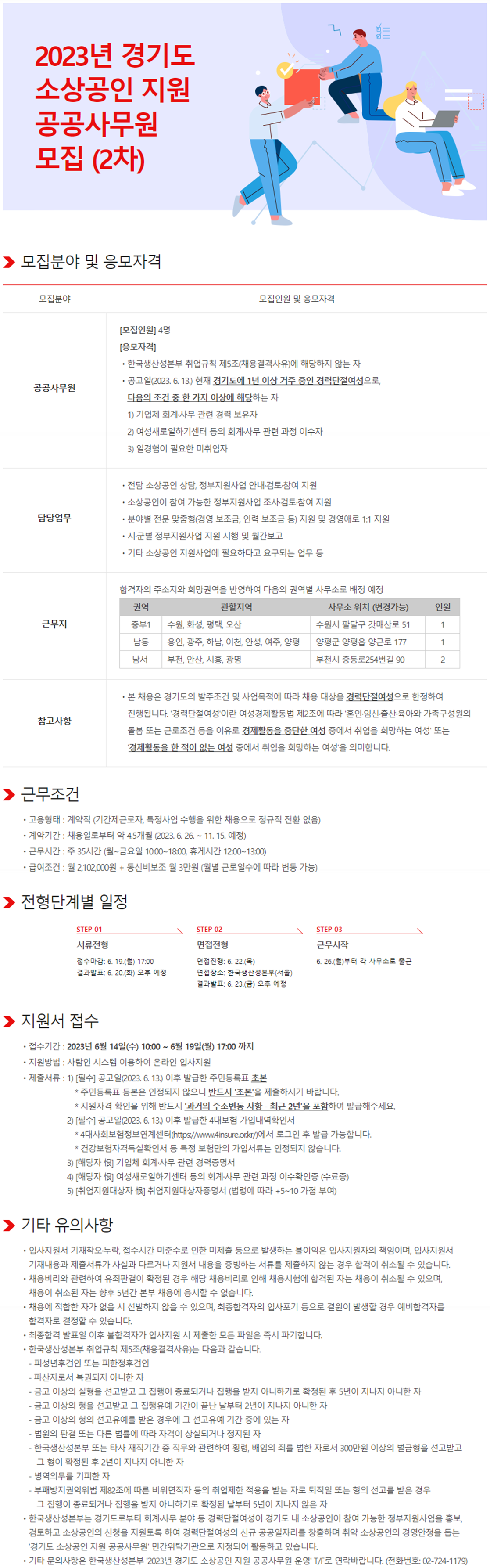 2023년 '경기도 소상공인 지원 공공사무원' 모집 (2차)